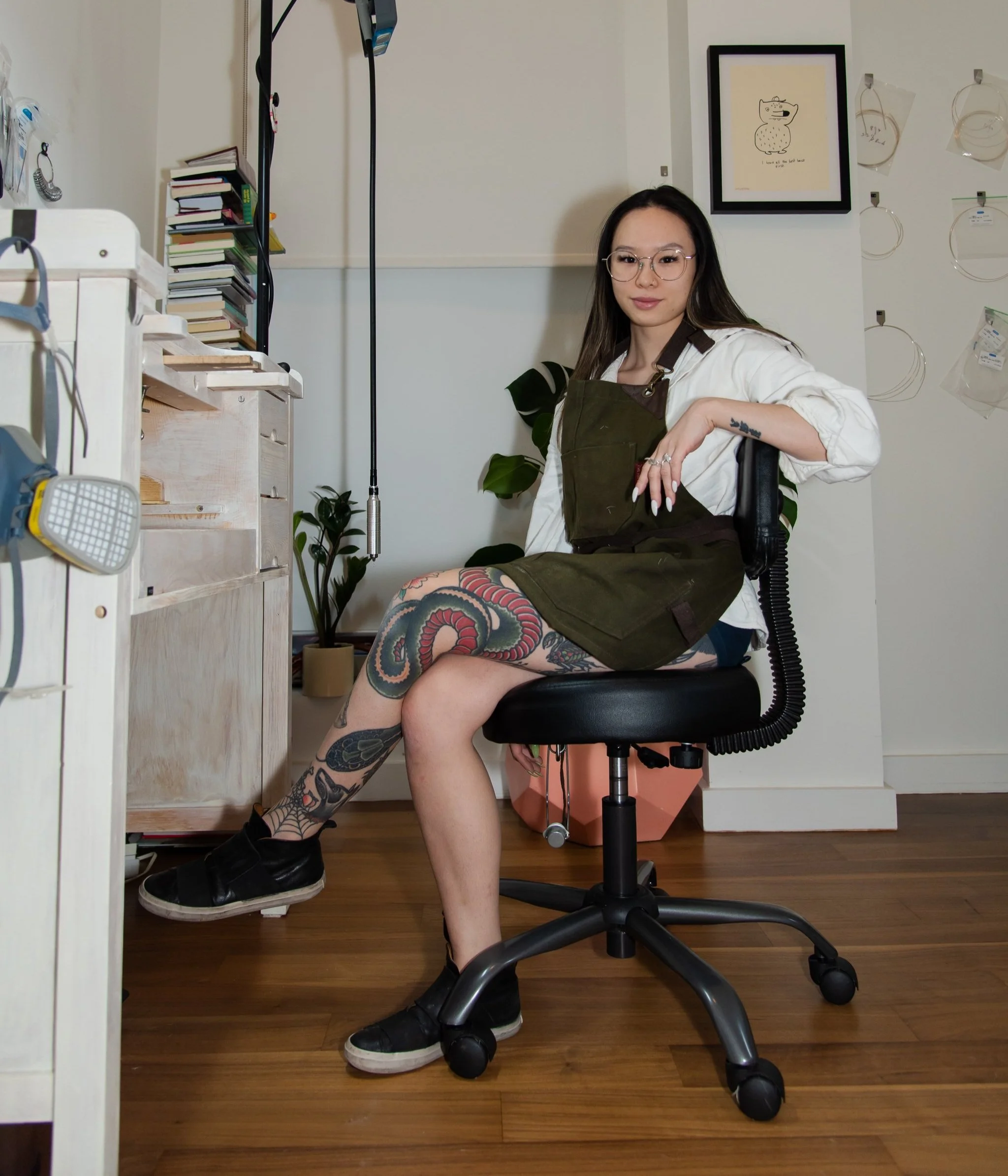 I was born and raised in New York City. A place that has always inspired me. Instead of stars I grew up looking at the skyline’s twinkling lights. As a little girl I dreamed about a way to keep those lights with me always. Finally, a winter evening’s stroll past a window filled with gleaming rings, necklaces and earrings suggested the answer. Making Jewelry would become a way to realize a piece of myself and share it with others. I took my first soldering class at the Fashion Institute of Technology as a young teenager (many years ago). Since then I have continued my education to further my craft. With Manufaktur 6, I am for the first time ready to share a series of my provocations with the world.